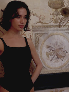 腰元のゴールド金具が肌の上で上品に輝き、さりげなくエレガントさを添えることで、大人の体に美しく馴染む一着。40代以上の方にも自信を持っておすすめできるバランスに仕上げました。