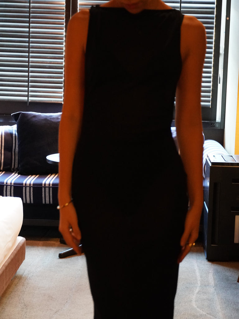 縦のラインを強調するデザイン性のあるサイドオープンですが、涼しく、伸縮性がとても高く機能的です。